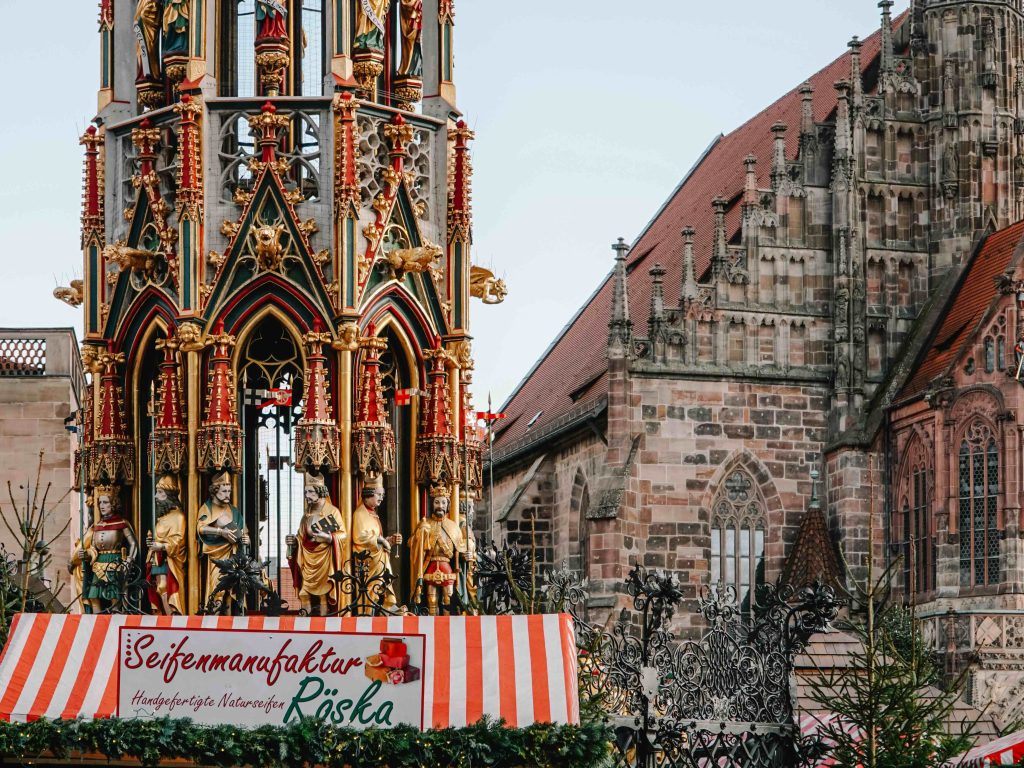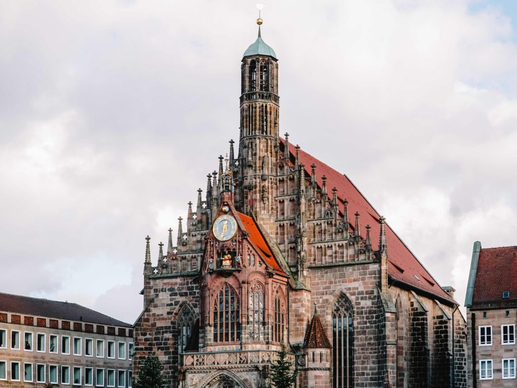Hauptmarkt’ta şehrin ünlü Gotik kilisesi Frauenkirche‘yi göreceksiniz. 700 yıllık bu mimari Frankonya’nın ilk kilisesi özelliğinde. Başta bir sinagog olarak tasarlanmış. Ancak, 1300’lü yıllarda yıkıldıktan sonra yeniden kilise olarak yapılmış. Hem Gotik hem de Orta Çağ stili ile göz kamaştıran bir mimarisi var. Diğer adıyla Our Lady’nin dış cephesinde ise Münih’teki gibi bir saat kulesi mevcut.