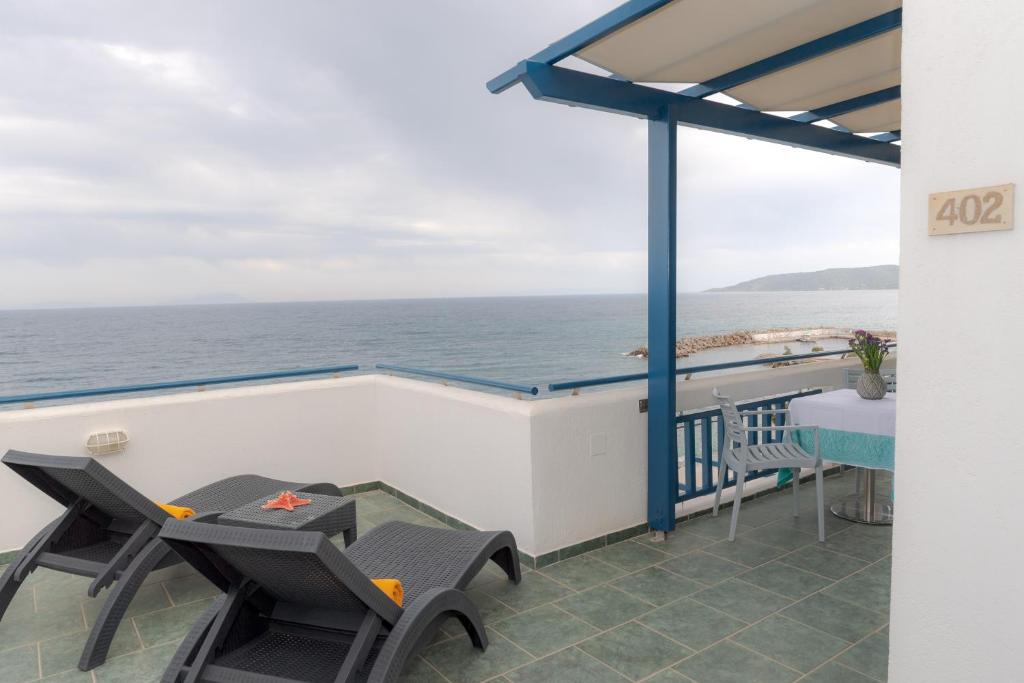 Sakız Adası’nın en güzel plajlarından biri olan çakıllı Agia Fotini kıyısında yer alan Theoxenia Chios, deniz kıyısı oteller arasında ekonomik bir seçenek. Denize sıfır konumu özellikle çocuklu aileler için ideal. Tam donanımlı mutfaklı daireleri ile konforlu bir Sakız Adası gezisi için tavsiye edebileceğimiz bir otel. Ayrıca, merkeze de 10 km mesafede. Otelin linki burada.
