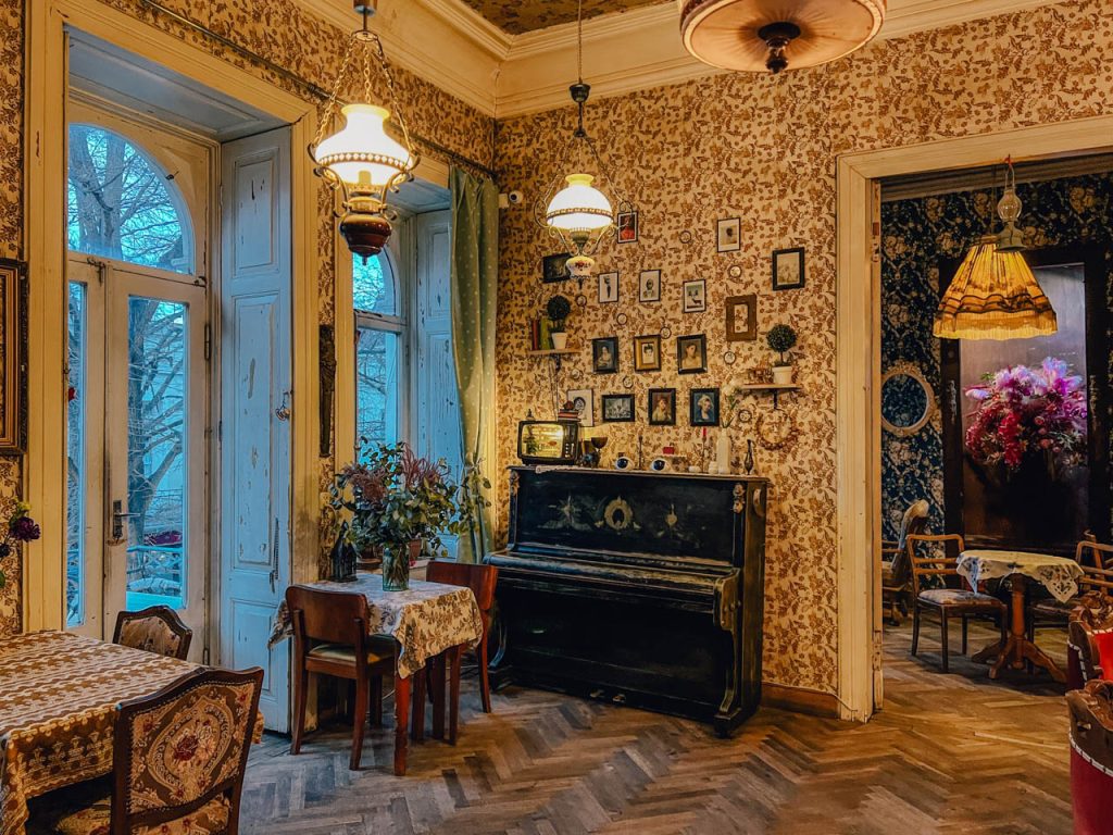 Şehrin en popüler kafelerinden biri olan Linville ile başlayalım. Vintage dekorasyonu ile hangi köşesine bakacağınızı şaşıracağınız, birbirinden ilgisiz eşyaların bir süre sonra kendi içinde çok da uyumlu olduğunu düşündüğünüz ilginç bir mekandayız. Eski bir Tiflis evinin orijinal haliyle hiç bozulmadan kafeye dönüştürüldüğü bu mekana sadece ortamı görmek için bile gelebilirsiniz.